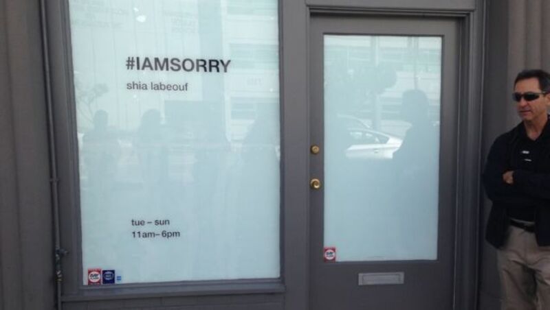 On Tuesday, serial plagiarist and "not famous" famous actor Shia LaBeouf invited the public to join him at his latest cry for help in Los Angeles. According to the press release for his new performance entitled "#IAMSORRY," LaBeouf will be "in situ" at an art gallery for six days so he can apologize for his sins.